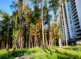 Сам район в окружении лесного массива, свой парк ухоженный с прогулочными зонами, хорошая экология.