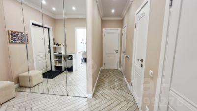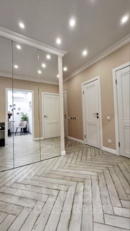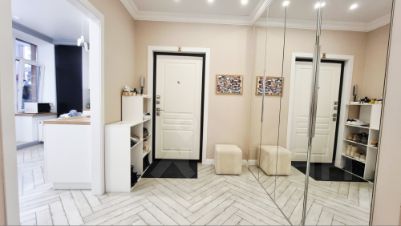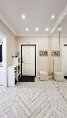 Просторный холл с большим встроенным зеркальным шкафом и гардеробной для дополнительного удобства.