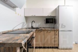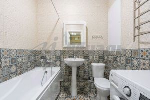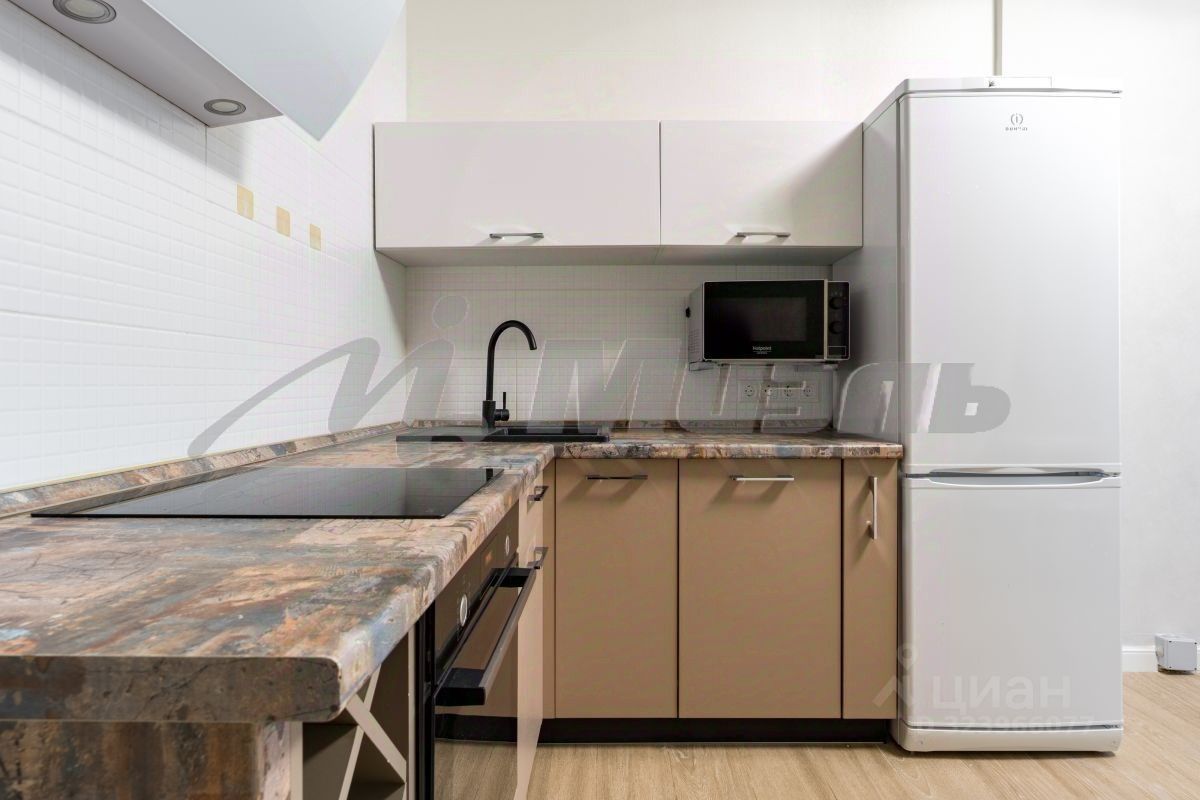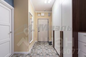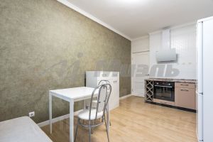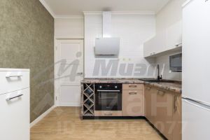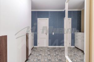 Пространство продаётся с мебелью и бытовой техникой. Установлена кухня со встроенной посудомоечной машиной, духовым шкафом, вытяжкой, холодильником и микроволновой печью. В спальне — двуспальная кровать с матрацем и вместительный шкаф высотой 2,7 м. В коридоре организованы шкаф, комод и полноценная прихожая.