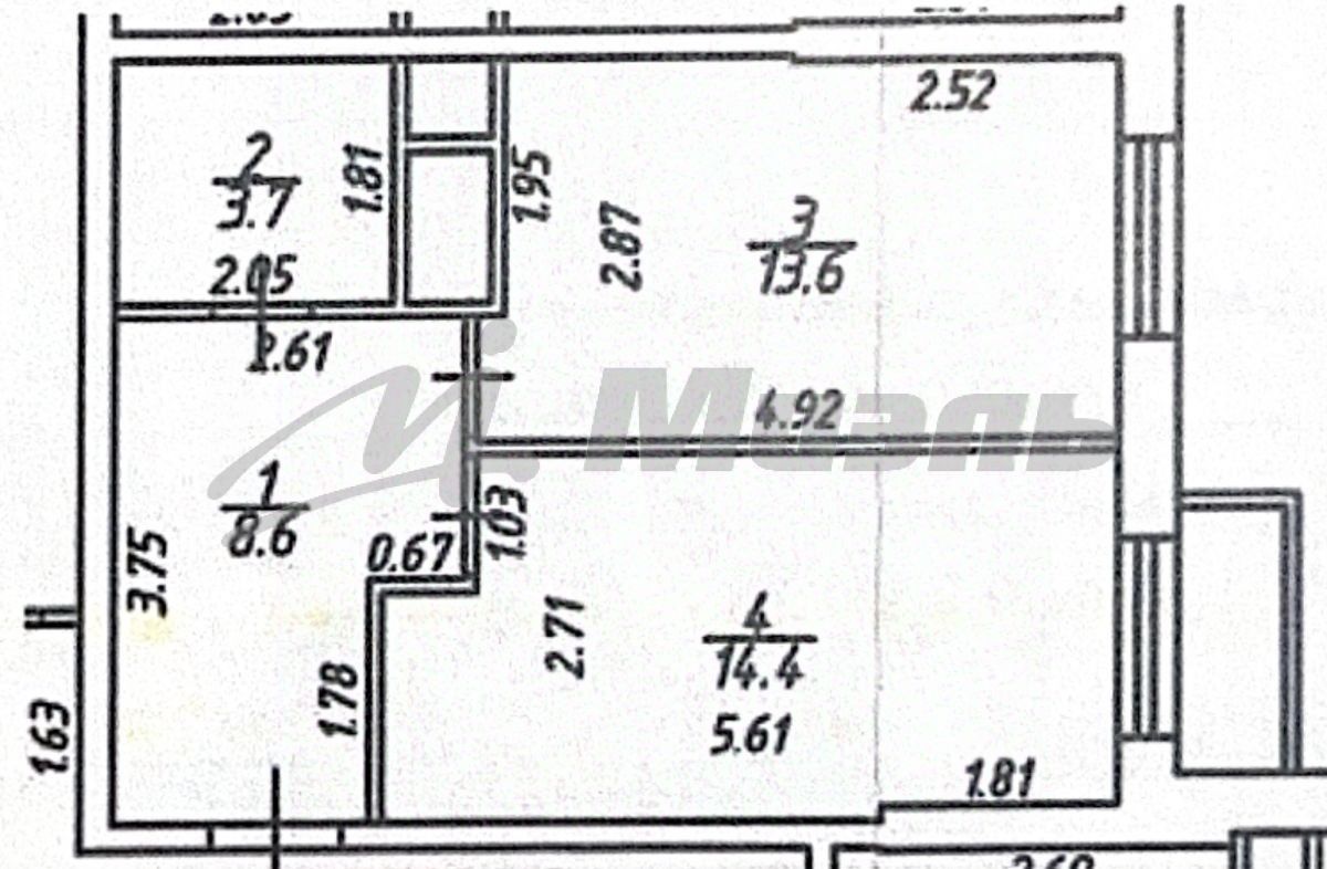 Планировка включает кухню-гостиную 13,5 м², отдельную комнату 14,5 м², санузел 4 м² и коридор 8,6 м² с продуманными зонами хранения.
