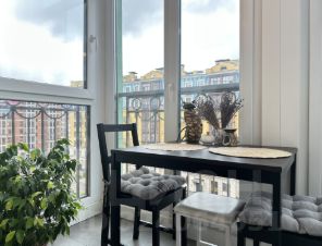 Утеплённая лоджия используется как полноценная обеденная зона. По желанию можно выделить отдельную спальню лёгкими перегородками, а также дополнить функционал гостиной мягкой мебелью.
