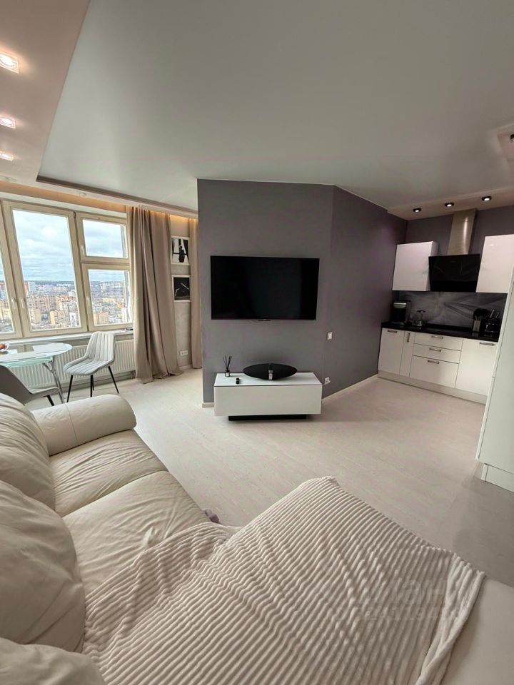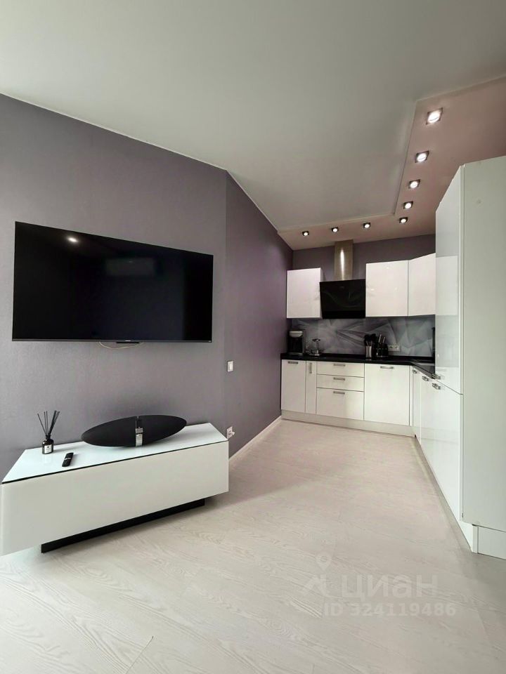 Квартира площадью 38,1 м2 с функциональной планировкой. Кухня-гостиная, спальня, укомплеутованная гардеробная и совмещенный с/у с душевой кабиной.