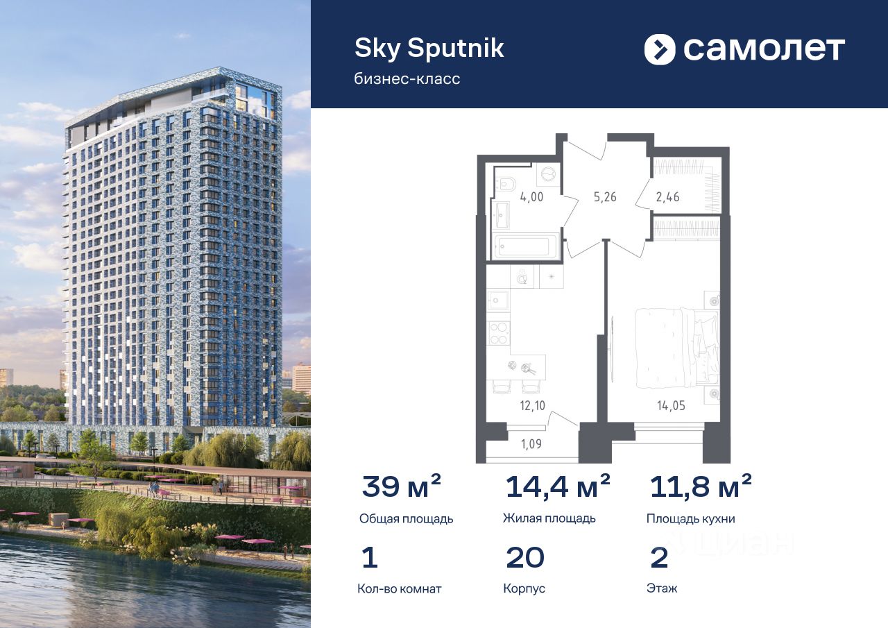 Строим кварталы для жизни с заботой о будущем. Предлагаются 1-комнатные апартаменты бизнес-класса 38,96 кв.м в корпусе 20 на 2 этаже, в Sky Sputnik