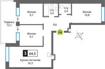 Продаётся 2-комнатная квартира в сданном доме (Соловьиная улица, 4 (поз.12)), срок сдачи: IV-кв. 2025, общей площадью 64.3 кв.м., на 1 этаже. Новый жилой комплекс "Отрада. Никольский квартал" от застройщика "СЗ Отрада Вилладж" расположен по адресу: Россия, Московская область, Красногорск, коттеджный посёлок Никольский Парк, улица Александра Блока