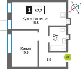 Продаётся 1-комнатная квартира в строящемся доме (поз. 4), срок сдачи: III-кв. 2027, общей площадью 37.7 кв.м., на 9 этаже. Новый жилой комплекс "Отрада. Никольский квартал" от застройщика "СЗ Отрада Вилладж" расположен по адресу: Россия, Московская область, Красногорск, коттеджный посёлок Никольский Парк, улица Александра Блока
