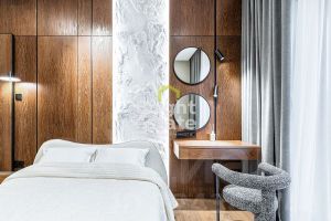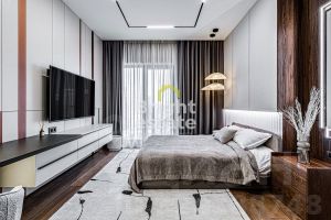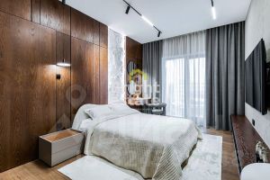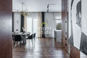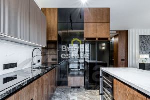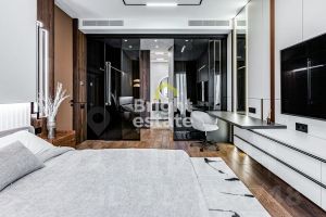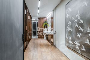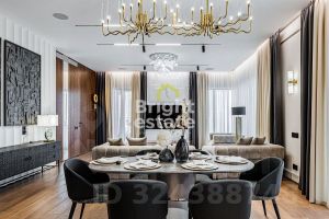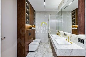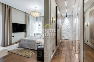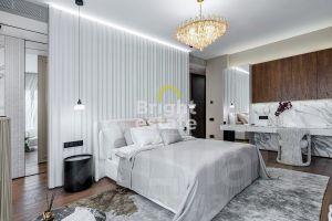В квартире реализована продуманная планировка: кухня-гостиная с выходом на террасу — место, где хочется встречать гостей, две мастер-спальни с отдельными ванными комнатами и гардеробными, третья спальня с гардеробной, хозяйственные помещения, включая постирочную, гостевой санузел с душевой и удобная гардеробная при входе. Каждый элемент интерьера — результат внимательной работы дизайнера и безупречного исполнения.