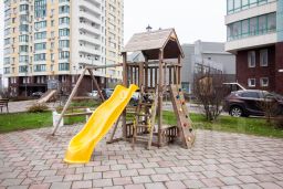 Квартира расположена на шестом этаже 25-этажного монолитного дома. Высота потолков — 3 метра, что создаёт ощущение простора и свободы. Окна выходят на улицу, на зеленый массив