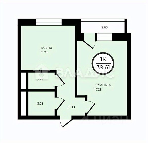 Однокомнатная квартира (39,6 кв.м.) в ЖК "8 Кленов".