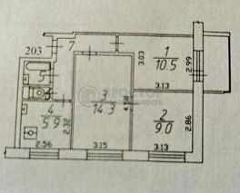 Квартира находится на 6 этаже 9-этажного панельного дома 1979 года постройки. Комнаты изолированные, их площадь составляет 14,3 кв. м, 10,5 кв. м и 9 кв. м. Жилая площадь — 33,8 кв. м. В квартире есть косметический ремонт, одна лоджия и раздельный санузел.