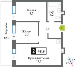 Продаётся 1-комнатная квартира в строящемся доме (поз. 9), срок сдачи: IV-кв. 2026, общей площадью 48.9 кв.м., на 1 этаже. Новый жилой комплекс "Отрада. Никольский квартал" от застройщика "СЗ Отрада Вилладж" расположен по адресу: Россия, Московская область, Красногорск, коттеджный посёлок Никольский Парк, улица Александра Блока