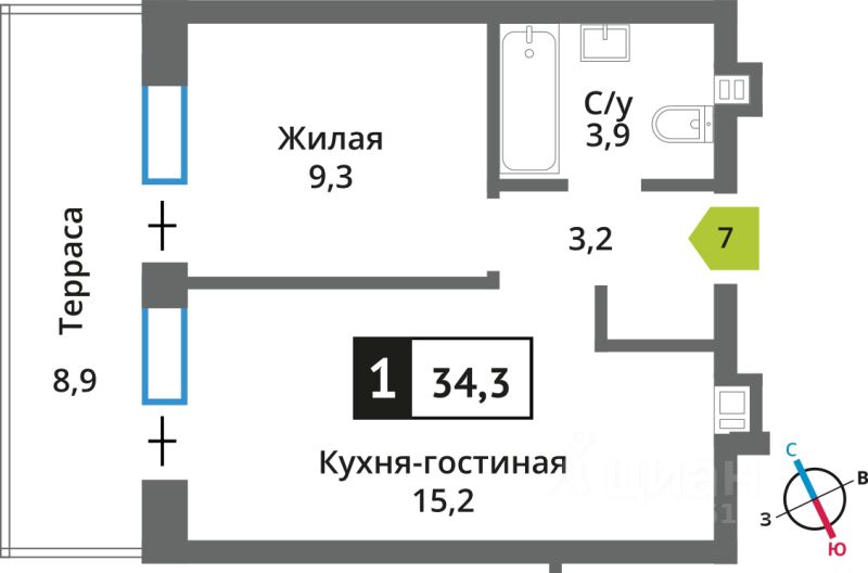 Продаётся 1-комнатная квартира в строящемся доме (поз. 9), срок сдачи: IV-кв. 2026, общей площадью 34.3 кв.м., на 1 этаже. Новый жилой комплекс "Отрада. Никольский квартал" от застройщика "СЗ Отрада Вилладж" расположен по адресу: Россия, Московская область, Красногорск, коттеджный посёлок Никольский Парк, улица Александра Блока