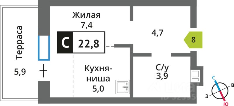 Продаётся студия в строящемся доме (поз. 9), срок сдачи: IV-кв. 2026, общей площадью 22.8 кв.м., на 1 этаже. Новый жилой комплекс "Отрада. Никольский квартал" от застройщика "СЗ Отрада Вилладж" расположен по адресу: Россия, Московская область, Красногорск, коттеджный посёлок Никольский Парк, улица Александра Блока