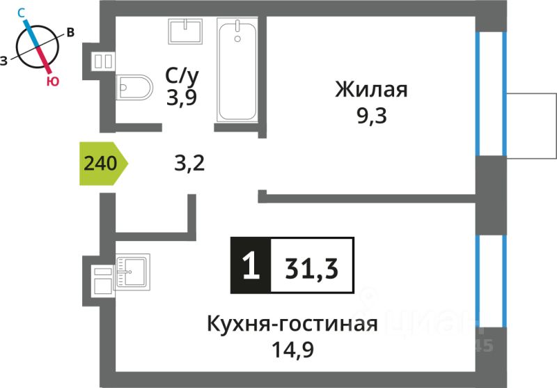 Продаётся студия в строящемся доме (поз. 9), срок сдачи: IV-кв. 2026, общей площадью 31.3 кв.м., на 6 этаже. Новый жилой комплекс "Отрада. Никольский квартал" от застройщика "СЗ Отрада Вилладж" расположен по адресу: Россия, Московская область, Красногорск, коттеджный посёлок Никольский Парк, улица Александра Блока