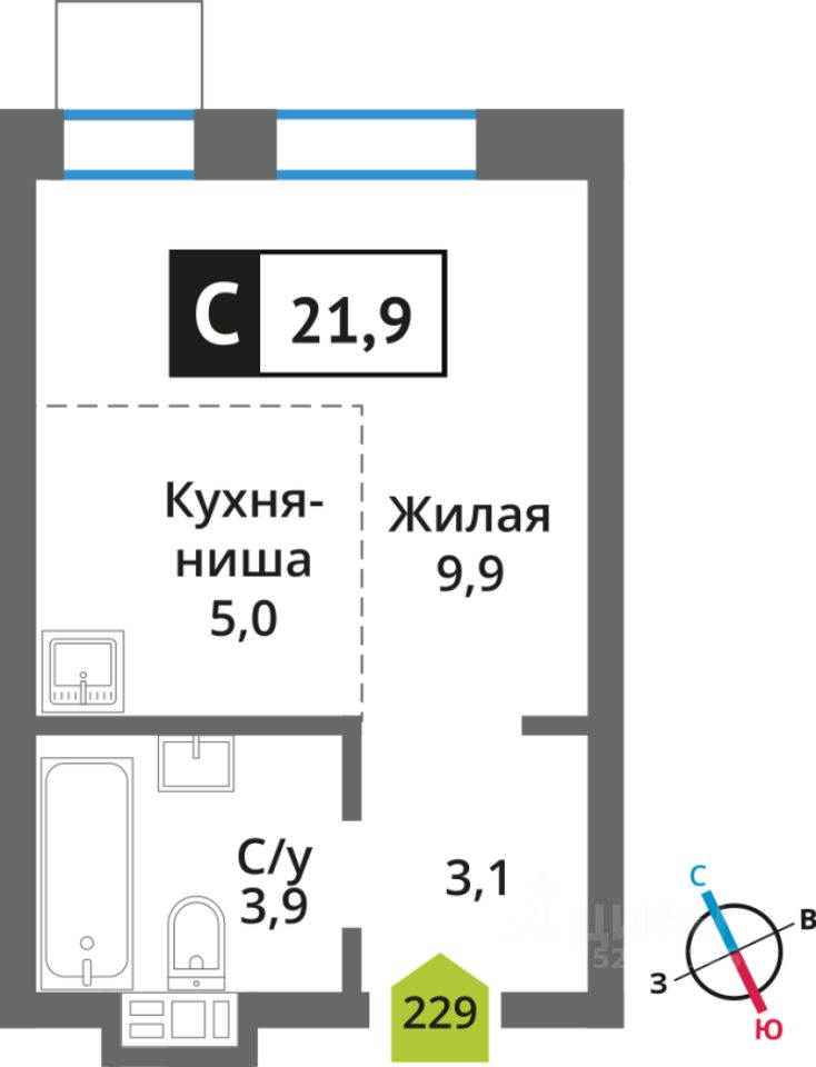 Продаётся студия в строящемся доме (поз. 9), срок сдачи: IV-кв. 2026, общей площадью 21.9 кв.м., на 6 этаже. Новый жилой комплекс "Отрада. Никольский квартал" от застройщика "СЗ Отрада Вилладж" расположен по адресу: Россия, Московская область, Красногорск, коттеджный посёлок Никольский Парк, улица Александра Блока