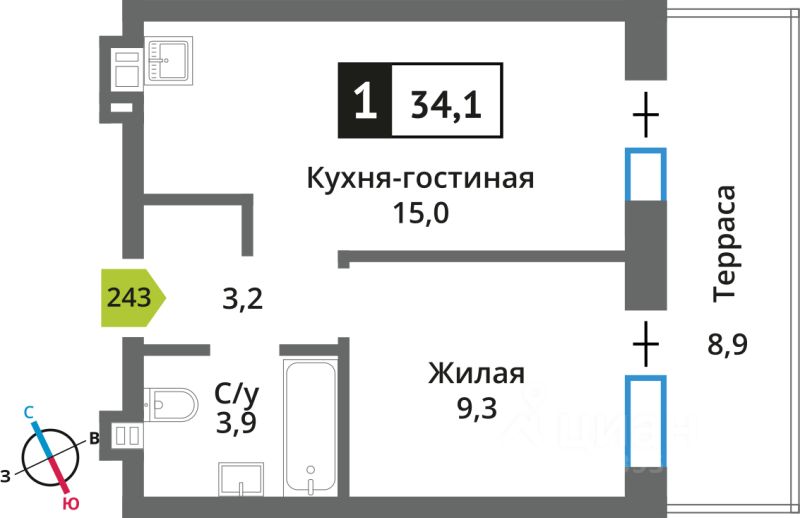 Продаётся 1-комнатная квартира в строящемся доме (поз. 9), срок сдачи: IV-кв. 2026, общей площадью 34.1 кв.м., на 1 этаже. Новый жилой комплекс "Отрада. Никольский квартал" от застройщика "СЗ Отрада Вилладж" расположен по адресу: Россия, Московская область, Красногорск, коттеджный посёлок Никольский Парк, улица Александра Блока