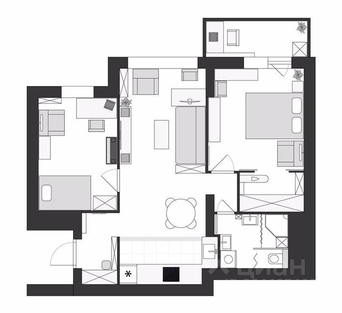 Квартира без ремонта, можно изменить планировку под себя (см.примеры на фото).
