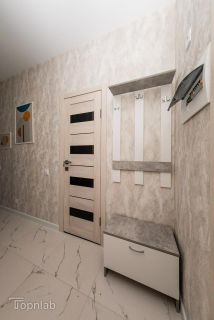 Квартира оформлена в светлой цветовой гамме, что создаёт ощущение простора и уюта. В отделке использованы современные материалы, обеспечивающие долговечность и эстетику.