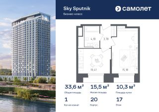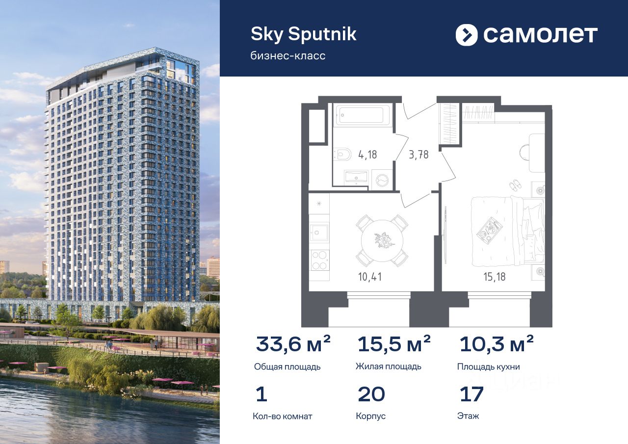 Строим кварталы для жизни с заботой о будущем. Предлагаются 1-комнатные апартаменты бизнес-класса 33,55 кв.м в корпусе 20 на 17 этаже, в Sky Sputnik