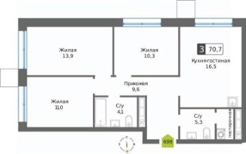 Трехкомнатная квартира евроформата с просторной кухней-гостиной и двумя санузлами в жилом комплексе бизнес-класса "Сити квартал Отрада". Планировка квартиры выполнена по современным стандартам и отличается повышенным комфортом. Квартал состоит из трех 31-этажных башен, вырастающих из единого основания, на вершине которого разместился приватный двор с доступом только для резидентов. На 31 этаже каждой из башен располагаются уникальные пентхаусы. Благоустройство закрытого двора включает в себя прогулочные дорожки, уютные зоны отдыха, разнообразные детские и спортивные площадки, а также собственную инфраструктуру на первых этажах дома - магазины, кафе, рестораны и фитнес-клуб. Проектом предусмотрен многоуровневый подземный паркинг с кладовыми помещениями. Идеальное расположение комплекса в сердце города сочетает в себе все преимущества комфортной жизни с прямым доступом к инфраструктурным, транспортным и культурным объектам. Надежный застройщик ГК "Отрада" с высочайшим рейтингом 5 звезд от портала ЕРЗ. Все корпуса во всех ЖК сданы раньше срока!