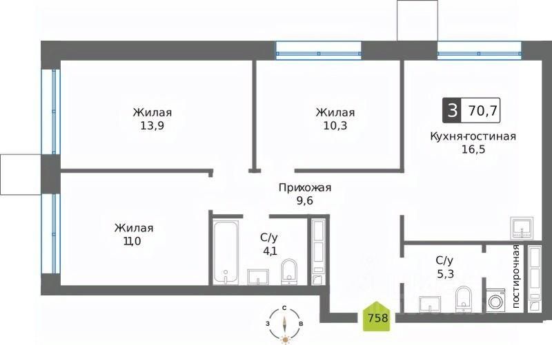 Общая площадь70,7 м²