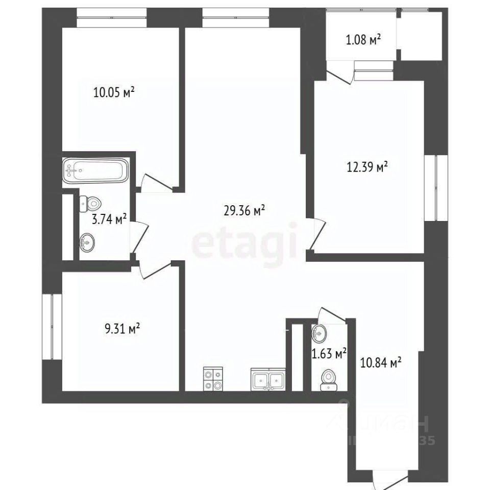 * Идеально подходит для тех, кто ценит личное пространство и свободу благодаря наличию трех спален изолированных спален и просторной кухни-гостиной общей площадью около 78,8 кв.м.