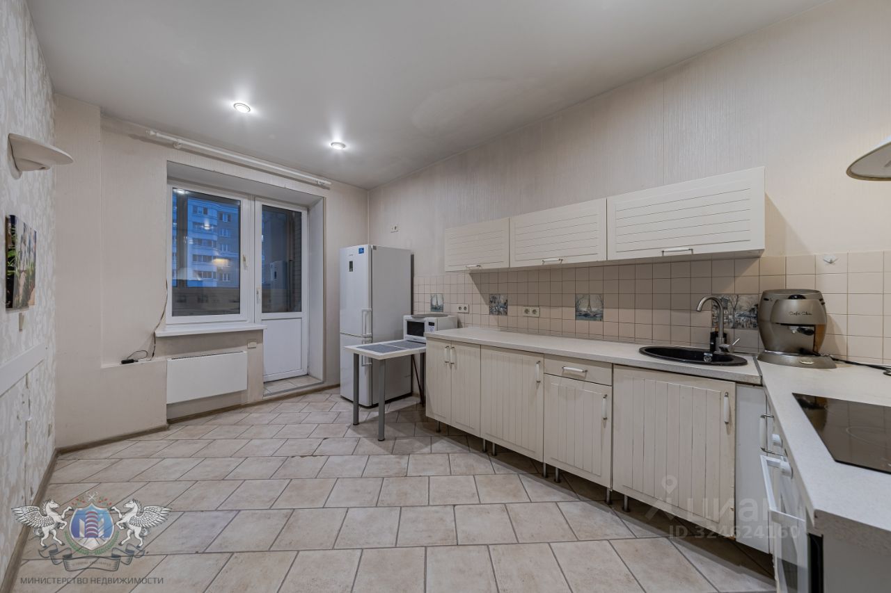 - Кухня 12 кв.м. с выходом на большую утепленную лоджию площадью 6 кв.м. Установлен кухонный гарнитур, холодильник, электрическая панель с духовым шкафом, вытяжка, микроволновка.