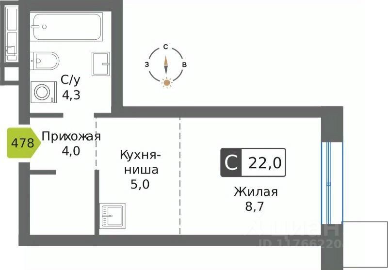 Квартира-студия с компактной кухней-нишей в жилом комплексе бизнес-класса "Сити квартал Отрада". Планировка квартиры выполнена по современным стандартам и отличается повышенным комфортом. Квартал состоит из трех 31-этажных башен, вырастающих из единого основания, на вершине которого разместился приватный двор с доступом только для резидентов. На 31 этаже каждой из башен располагаются уникальные пентхаусы. Благоустройство закрытого двора включает в себя прогулочные дорожки, уютные зоны отдыха, разнообразные детские и спортивные площадки, а также собственную инфраструктуру на первых этажах дома - магазины, кафе, рестораны и фитнес-клуб. Проектом предусмотрен многоуровневый подземный паркинг с кладовыми помещениями. Идеальное расположение комплекса в сердце города сочетает в себе все преимущества комфортной жизни с прямым доступом к инфраструктурным, транспортным и культурным объектам. Надежный застройщик ГК "Отрада" с высочайшим рейтингом 5 звезд от портала ЕРЗ. Все корпуса во всех ЖК сданы раньше срока!