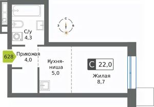 Квартира-студия с компактной кухней-нишей в жилом комплексе бизнес-класса "Сити квартал Отрада". Планировка квартиры выполнена по современным стандартам и отличается повышенным комфортом. Квартал состоит из трех 31-этажных башен, вырастающих из единого основания, на вершине которого разместился приватный двор с доступом только для резидентов. На 31 этаже каждой из башен располагаются уникальные пентхаусы. Благоустройство закрытого двора включает в себя прогулочные дорожки, уютные зоны отдыха, разнообразные детские и спортивные площадки, а также собственную инфраструктуру на первых этажах дома - магазины, кафе, рестораны и фитнес-клуб. Проектом предусмотрен многоуровневый подземный паркинг с кладовыми помещениями. Идеальное расположение комплекса в сердце города сочетает в себе все преимущества комфортной жизни с прямым доступом к инфраструктурным, транспортным и культурным объектам. Надежный застройщик ГК "Отрада" с высочайшим рейтингом 5 звезд от портала ЕРЗ. Все корпуса во всех ЖК сданы раньше срока!