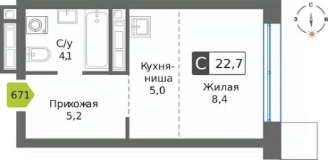Квартира-студия с компактной кухней-нишей в жилом комплексе бизнес-класса "Сити квартал Отрада". Планировка квартиры выполнена по современным стандартам и отличается повышенным комфортом. Квартал состоит из трех 31-этажных башен, вырастающих из единого основания, на вершине которого разместился приватный двор с доступом только для резидентов. На 31 этаже каждой из башен располагаются уникальные пентхаусы. Благоустройство закрытого двора включает в себя прогулочные дорожки, уютные зоны отдыха, разнообразные детские и спортивные площадки, а также собственную инфраструктуру на первых этажах дома - магазины, кафе, рестораны и фитнес-клуб. Проектом предусмотрен многоуровневый подземный паркинг с кладовыми помещениями. Идеальное расположение комплекса в сердце города сочетает в себе все преимущества комфортной жизни с прямым доступом к инфраструктурным, транспортным и культурным объектам. Надежный застройщик ГК "Отрада" с высочайшим рейтингом 5 звезд от портала ЕРЗ. Все корпуса во всех ЖК сданы раньше срока!