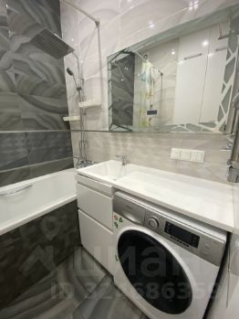 Ванная комната: установлен большой и вместительный встроенный шкаф с отдельным ящиком для белья, большая ванна, большое зеркало с подсветкой и музыкой, удобный большой смеситель.