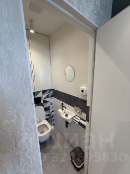 В ванной зеркало с подсветкой и тумба с раковиной, сделанные под заказ.