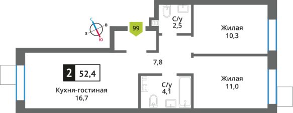 Продаётся 2-комнатная квартира в строящемся доме (поз. 9), срок сдачи: IV-кв. 2026, общей площадью 52.4 кв.м., на 6 этаже. Новый жилой комплекс "Отрада. Никольский квартал" от застройщика "СЗ Отрада Вилладж" расположен по адресу: Россия, Московская область, Красногорск, коттеджный посёлок Никольский Парк, улица Александра Блока