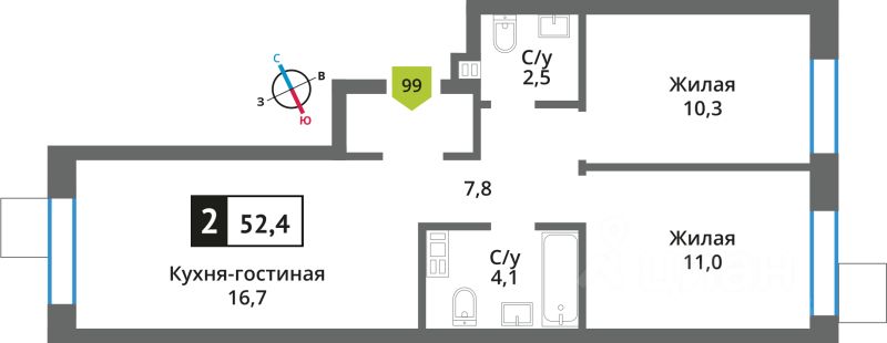 Продаётся 2-комнатная квартира в строящемся доме (поз. 9), срок сдачи: IV-кв. 2026, общей площадью 52.4 кв.м., на 8 этаже. Новый жилой комплекс "Отрада. Никольский квартал" от застройщика "СЗ Отрада Вилладж" расположен по адресу: Россия, Московская область, Красногорск, коттеджный посёлок Никольский Парк, улица Александра Блока