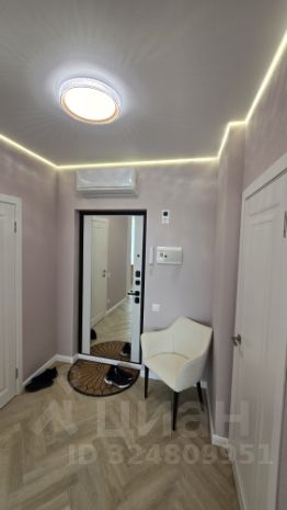 В квартире выполнен качественный дизайнерский ремонт (делали под себя), стены декоративная штукатурка, полы кварцвинил, новая импортная мебель, кухонный гарнитур со встроенным холодильником, кондиционер, вместительная гардеробная комната.