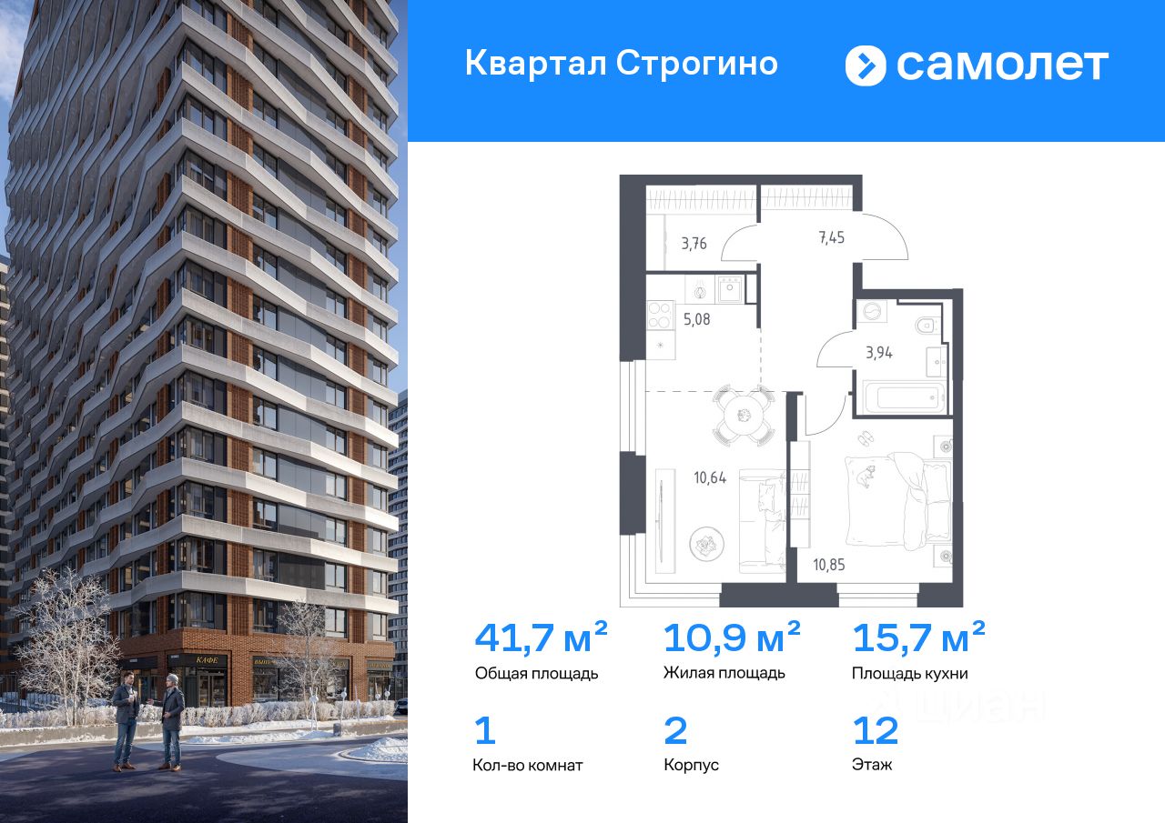 Строим кварталы для жизни с заботой о будущем. Предлагается 1-комнатная квартира комфорт-класса 41,72 кв.м в корпусе 2 на 12 этаже, в ЖК "Квартал Строгино"