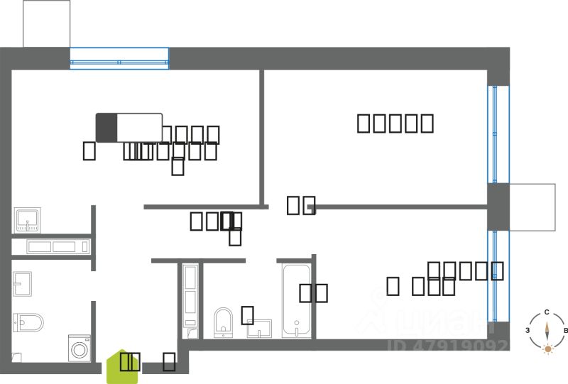Продаётся 2-комнатная квартира в строящемся доме (Секция Нова), срок сдачи: II-кв. 2028, общей площадью 61 кв.м., на 28 этаже.