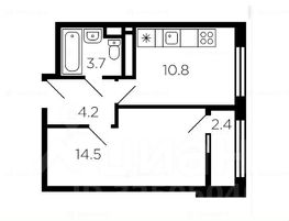 Продается 1-комнатная квартира, общей площадью 33,2м2 + лоджия 2,5м2 (комната 14,5м2; кухня 10,8м2; коридор 4,2м2; с/у 3,7м2; лоджия 2,5м2).