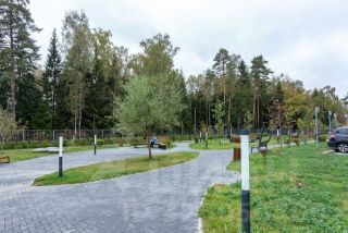 Облагороженная придомовая, охраняемая территория, видеонаблюдение, спортивные площадки, шлагбаумы на въезд, гостевая парковка, двор без машин. Своя котельная. Развитая инфраструктура — школа и детский сад на территории ЖК, магазины и кафе, соседский клуб по интересам. Рядом лесопарк с озером Лесное. Проживание в экологически чистом районе и близость от Москвы определяют основные достоинства ЖК.