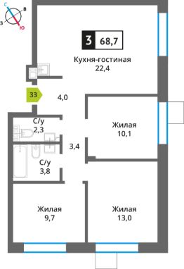 Продаётся 3-комнатная квартира в строящемся доме (поз. 5), срок сдачи: III-кв. 2027, общей площадью 68.7 кв.м., на 4 этаже. Новый жилой комплекс "Отрада. Никольский квартал" от застройщика "СЗ Отрада Вилладж" расположен по адресу: Россия, Московская область, Красногорск, коттеджный посёлок Никольский Парк, улица Александра Блока