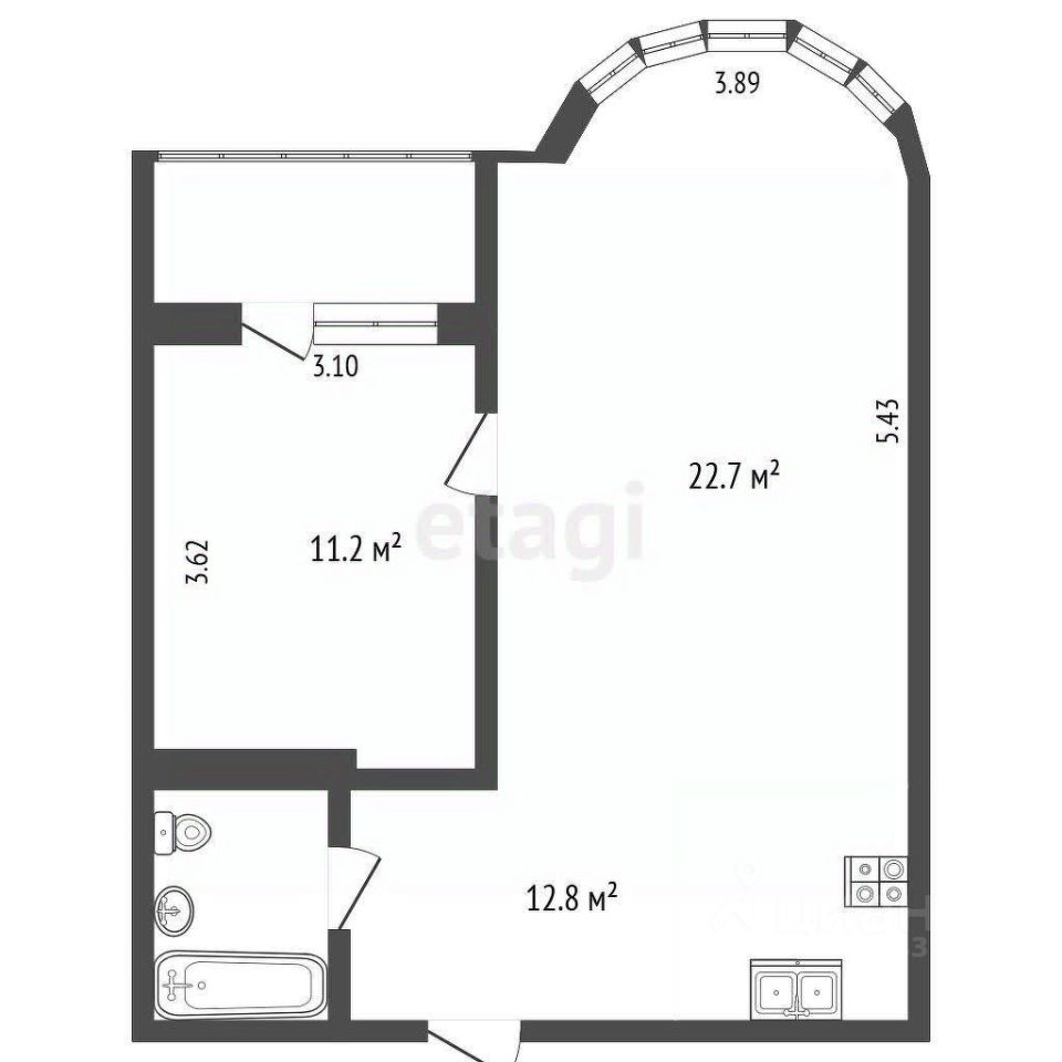 Идеальная планировка: Просторная светлая кухня-гостиная с эркером и изолированная комната обеспечат комфорт всем членам семьи.