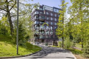 Самый роскошный вид во всем жилом комплексе: окна все полностью выходят в лес на вековые деревья. Здесь очень тихо, внизу проходит набережная, полная приватность без соседних домов.