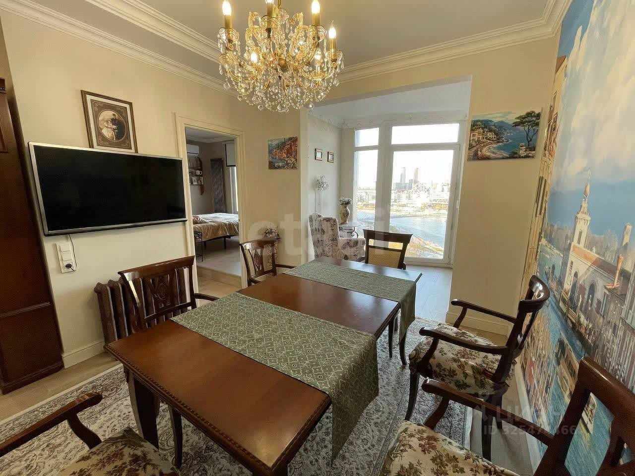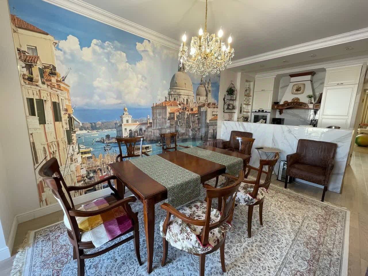 В трех комнатах установлены панорамные окна, включая окна в пол, которые открывают захватывающий вид на реку, Крокус Сити, подвесной мост и саму Москву. Здесь нет натяжных потолков и ламината все стены и потолки аккуратно отшпаклеваны и покрашены, а на полу уложена качественная паркетная доска. В квартире установлена дорогая сантехника, радиаторы отопления и кондиционеры, что создает комфорт в любое время года.