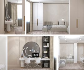 Интерьер выполнен в светлых пастельных тонах, универсальных под любой вкус; при желании обои можно перекрасить.