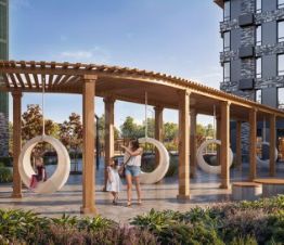 В комплексе: школа, два детских сада, магазины, кафе, аптеки, кофейни