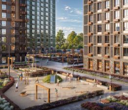На территории будет вся необходимая инфраструктура для комфортного проживания: коммерческие помещения на первых этажах, собственные детские сады и школа, спортивные и детские площадки с продуманным озеленением, зоны тихого отдыха, пешеходный бульвар и велодорожки.