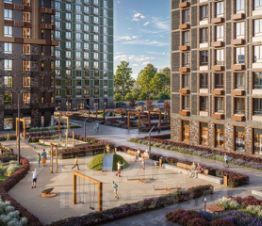 На территории будет вся необходимая инфраструктура для комфортного проживания: коммерческие помещения на первых этажах, собственные детские сады и школа, спортивные и детские площадки с продуманным озеленением, зоны тихого отдыха, пешеходный бульвар и велодорожки.