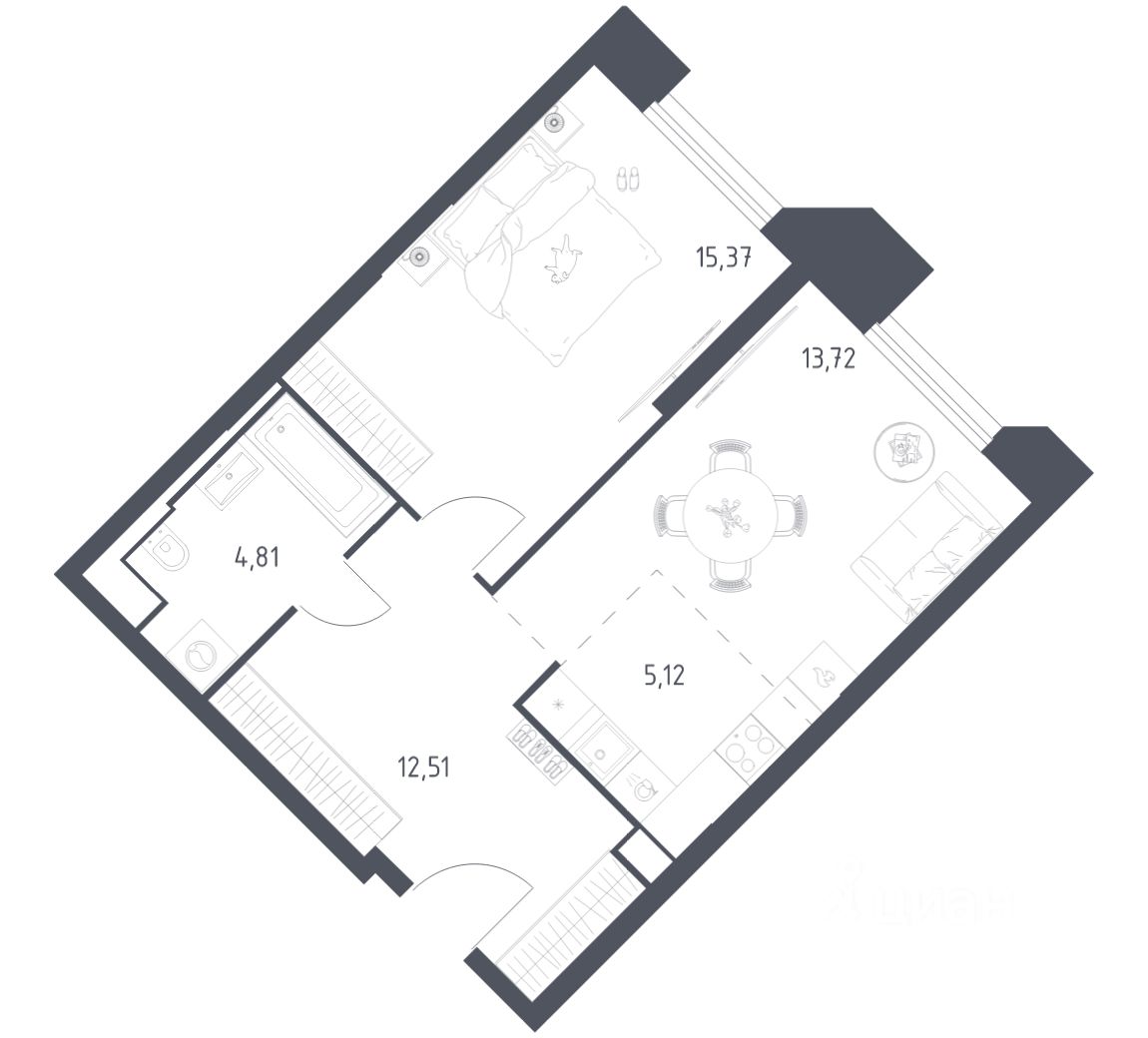 Строим кварталы для жизни с заботой о будущем. Предлагаются 1-комнатные апартаменты бизнес-класса площадью 51,53 кв.м в корпусе 21 на 2-м этаже, в жилом комплексе "Sky Sputnik".