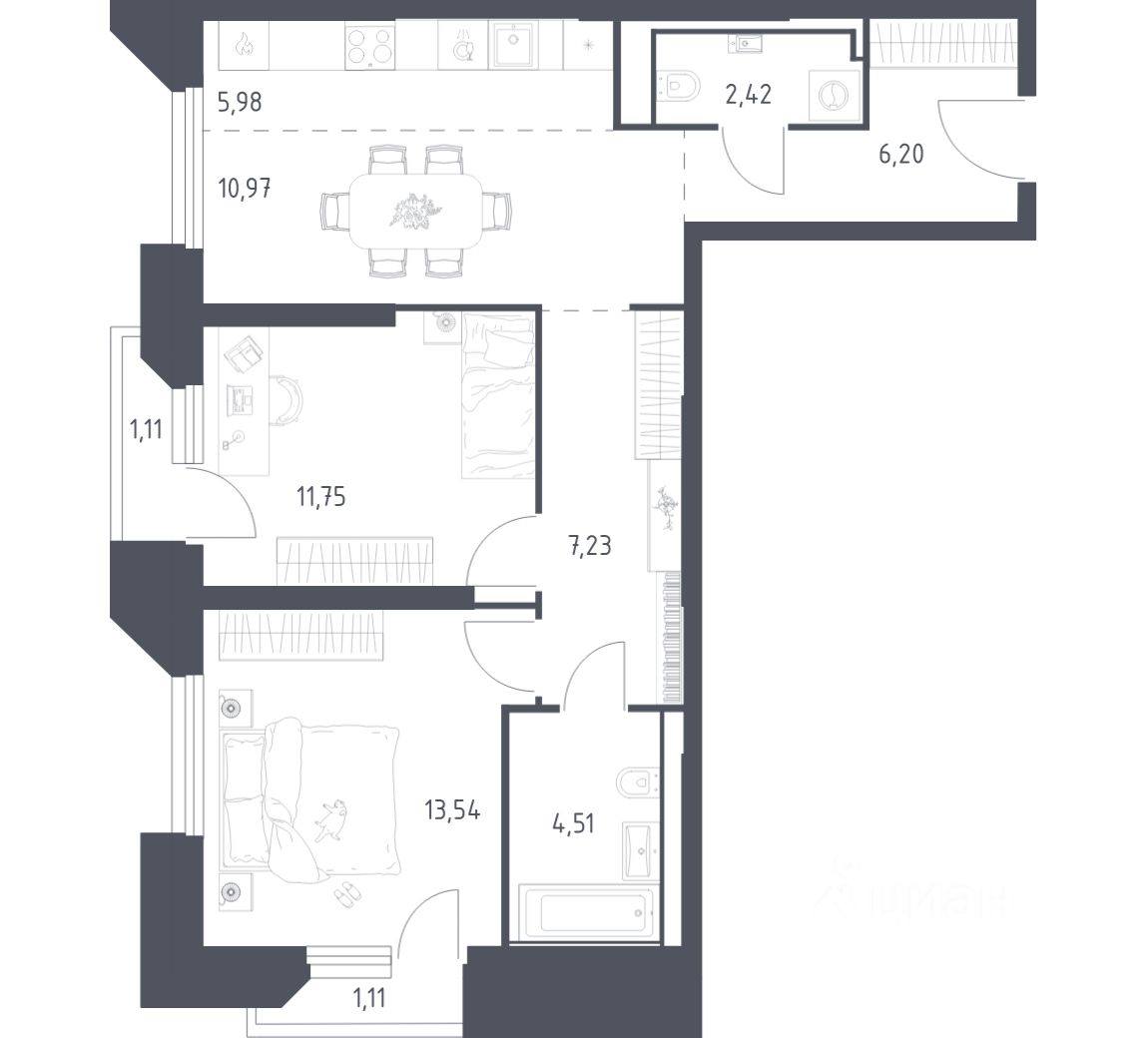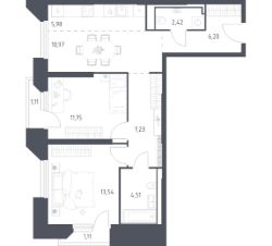 Строим кварталы для жизни с заботой о будущем. Предлагаются 2-комнатные апартаменты бизнес-класса площадью 64,82 кв.м в корпусе 21 на 4-м этаже, в жилом комплексе "Sky Sputnik".