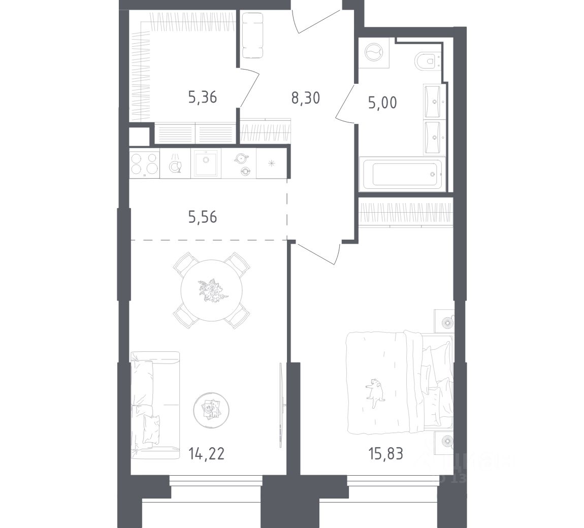 Строим кварталы для жизни с заботой о будущем. Предлагаются 1-комнатные апартаменты бизнес-класса площадью 54,27 кв.м в корпусе 20 на 2-м этаже, в жилом комплексе "Скай Спутник".