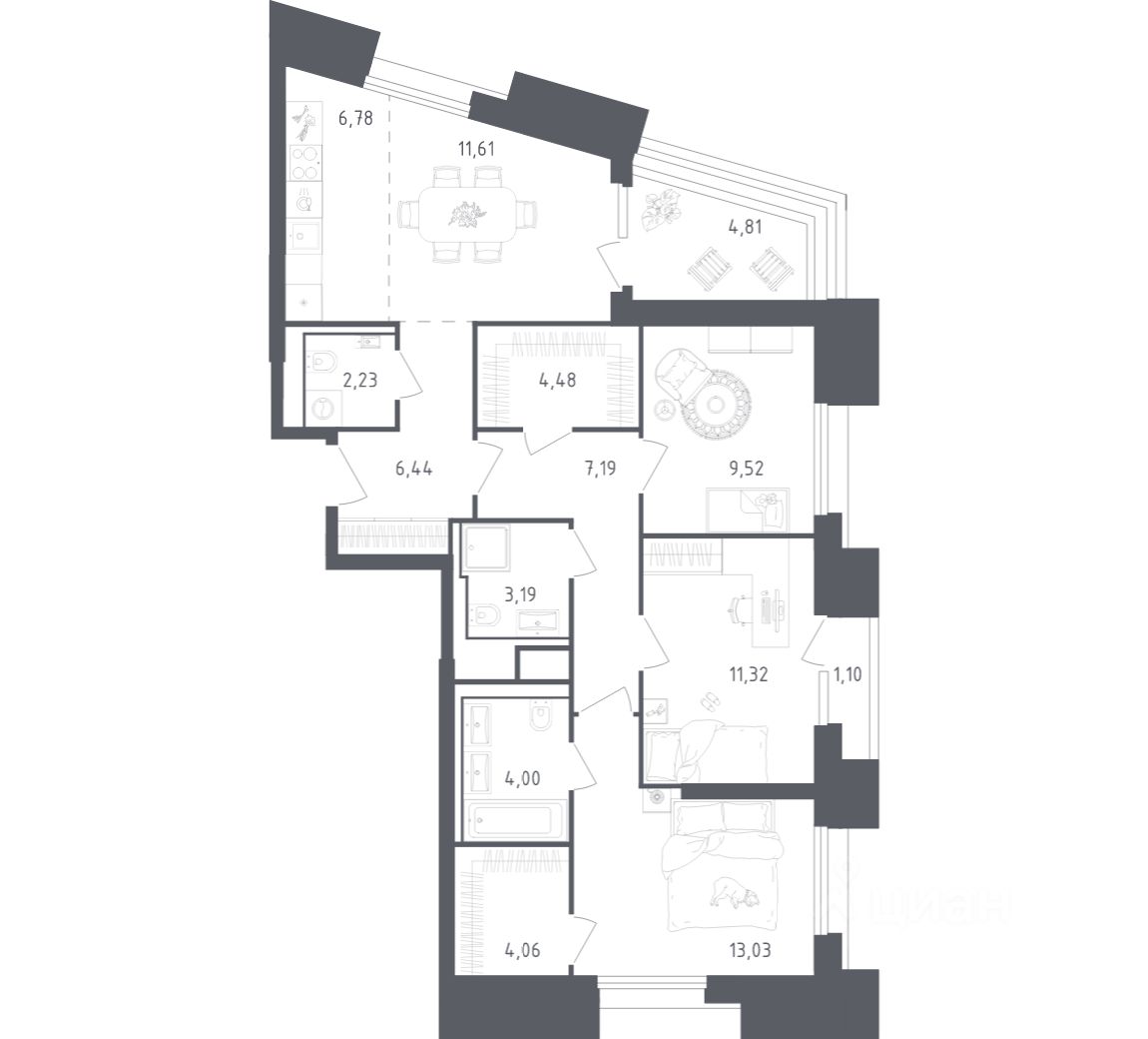 Строим кварталы для жизни с заботой о будущем. Предлагаются 3-комнатные апартаменты бизнес-класса площадью 89,76 кв.м в корпусе 20 на 4-м этаже, в жилом комплексе "Sky Sputnik".